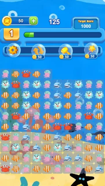 ¡Sumérgete en la encantadora magia de Match-3 con este simpático juego de criaturas marinas!